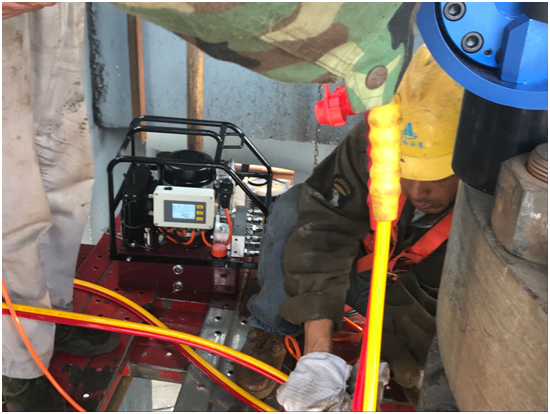 因為客戶為第一次使用,所提供是智能四同步液壓泵,該泵擁有手動和自動兩種使用模式,并且含有無線傳輸功能,能讓客戶更直觀的了解緊固數(shù)值。