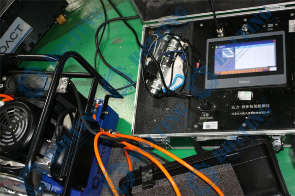 液壓扭力扳手第三方扭矩校驗檢測,理論上液壓扭力扳手檢測標(biāo)定與液壓泵的型號和流量無關(guān),液壓扭力扳手泵經(jīng)過校正壓力表,均可對液壓扭力扳手進(jìn)行檢測,經(jīng)過長期及大量的實踐證明,液壓泵的流量與扭矩大小息息相關(guān),舉例說明,BOLTING博霆PE55液壓扭力扳手泵和BOLTING博霆PE110液壓扭力扳手泵,采用同一塊經(jīng)過校驗壓力表,分先后順序緊固一顆螺栓,由PE55液壓扭力扳手泵配套液壓扭力扳手先進(jìn)行緊固,達(dá)到設(shè)定壓力后(300bar),擰不動了,換PE110液壓扭力扳手泵,壓力同樣設(shè)定300bar,壓力相同,螺栓同樣可以轉(zhuǎn)動,反之,采用PE55液壓扭力扳手泵,配合此扳手,壓力設(shè)定到300bar,確無法松動螺栓,配PE110液壓扭力扳手泵可輕松拆卸此螺栓,得出結(jié)論,液壓扭力扳手在工作過程中,需克服摩擦力,雖然液壓扭力扳手無沖擊性,但流量決定可以克服多少摩擦力,液壓扭力扳手怎樣檢測更精準(zhǔn)?市場上部分廠家流量與扭矩存在虛標(biāo)成分(電動液壓泵流量檢測最簡單方式,可采用單向閥裝置連接液壓油管,將液壓泵調(diào)整至所需檢測的壓力流量,每分鐘溢出的油量則是液壓泵流量,測流量裝置BOLTING博霆有售),計量院或第三方檢測機構(gòu)所采用的液壓泵型號不盡相同,采用購買液壓扭力扳手配套的電動液壓扭力扳手泵,配套進(jìn)行檢測更為精確。