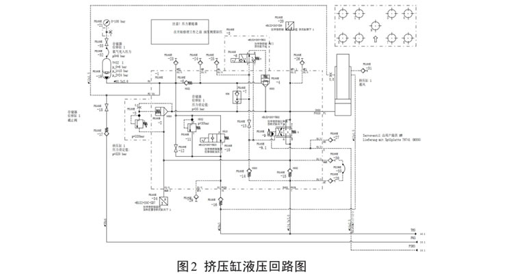 拉伸墊的擠壓力是依靠滑塊壓上拉伸墊而被動(dòng)產(chǎn)生的壓力,壓力大小的控制由伺服閥來(lái)實(shí)現(xiàn)。常見(jiàn)的壓力下超故障有缸體活塞密封泄漏、安全閥損壞、伺服閥損壞、預(yù)充油液不足等形式。首先擠壓缸上行是依靠 20bar 的預(yù)充壓力推動(dòng)活塞桿跟隨頂冠上行至上死點(diǎn),由于在該過(guò)程中每個(gè)缸的壓力和位置都沒(méi)有監(jiān)控,即使出現(xiàn)預(yù)充壓力不足、活塞沒(méi)有上行至上死點(diǎn)都不會(huì)故障報(bào)警,如圖2所示。在沖壓力下超故障出現(xiàn)以后,可以在操控面板的幫助界面查看擠壓缸預(yù)充壓力是否正常,排除預(yù)充壓力是否合適以后,再排查伺服閥以及伺服閥控制模塊。在長(zhǎng)時(shí)間停機(jī)或者拉伸墊大修以后出現(xiàn)擠壓力下超故障,應(yīng)優(yōu)先檢查插裝式安全閥。由于插裝式安全閥控制油和系統(tǒng)油都是來(lái)自擠壓缸的油,而正常情況下安全閥芯都不動(dòng)作,閥芯活動(dòng)間隙被油泥填充,在檢修或者啟動(dòng)期間,如果安全閥芯被意外開(kāi)啟,復(fù)位彈簧將不能使閥芯復(fù)位。閥芯沒(méi)有復(fù)位,擠壓缸下腔的就不能建立起需要的壓力,導(dǎo)致故障產(chǎn)生。